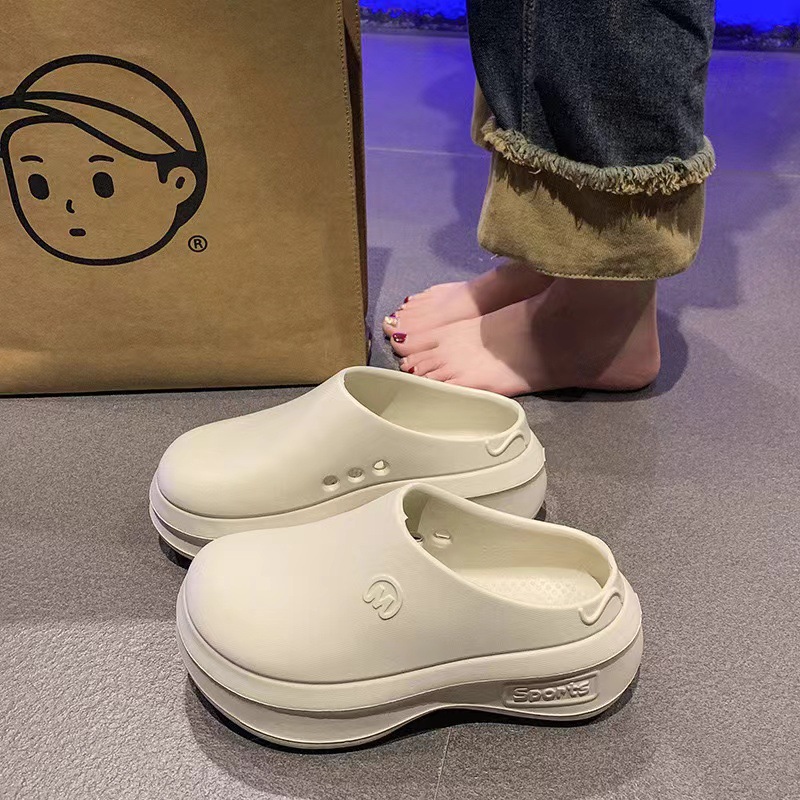 厚い底で糞を踏む感のある包頭半スリッパの女性2024夏の新型は軽くて滑り止めが高くなります。