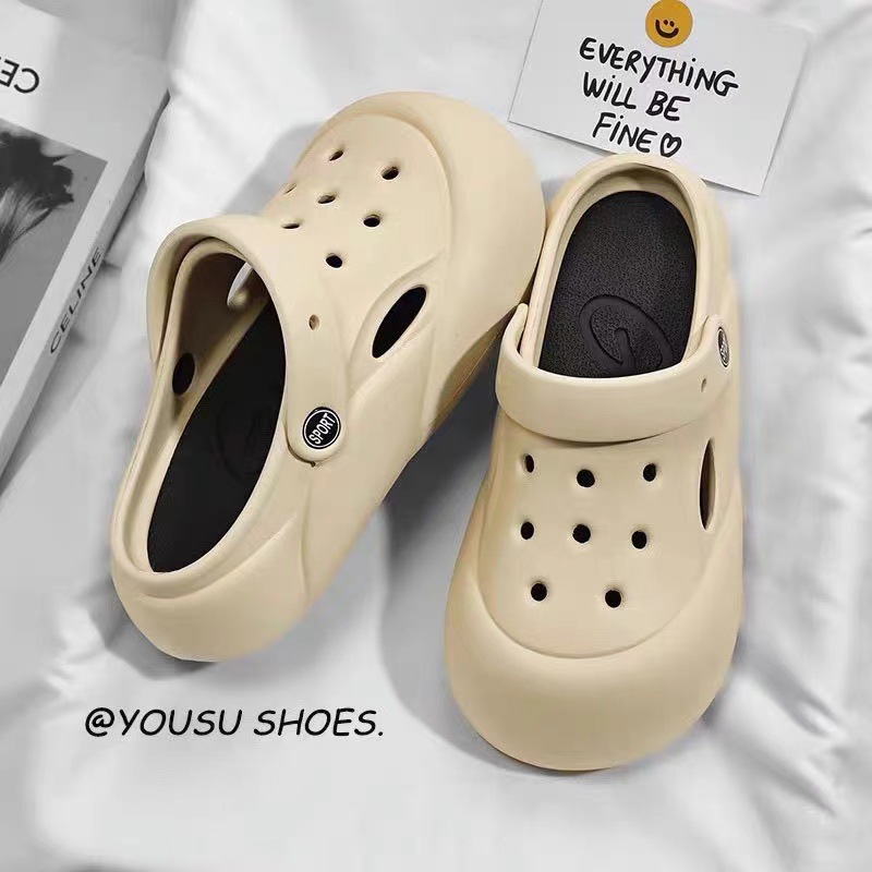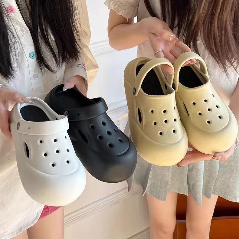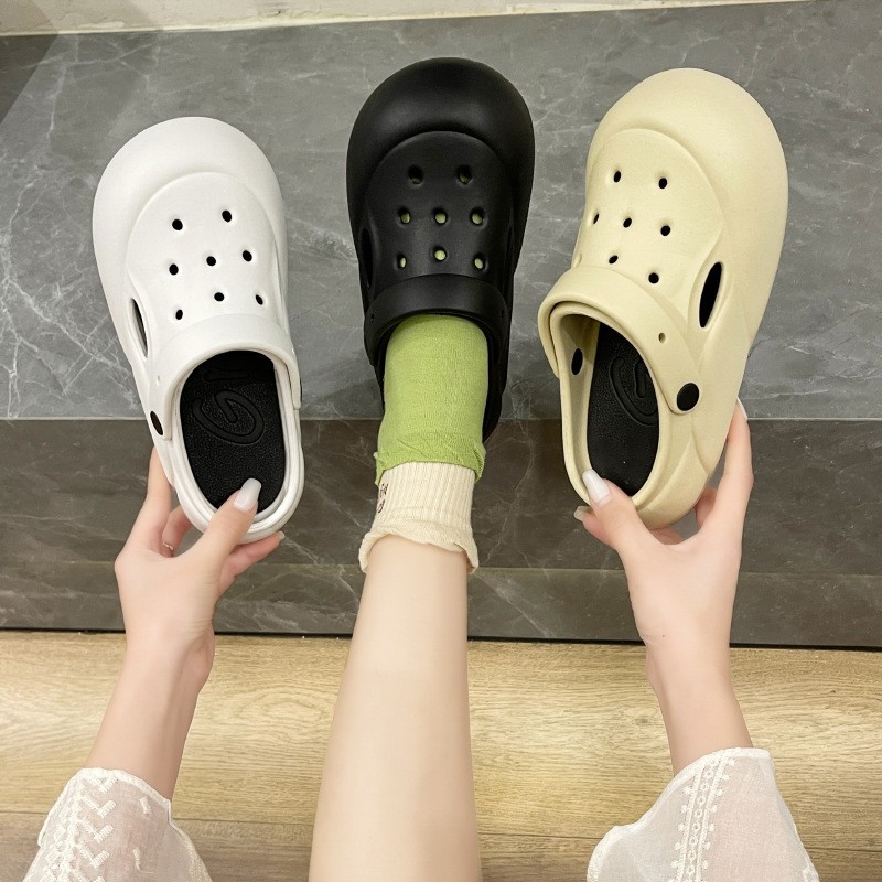 穴の靴の女性のタイプの夏の外は2024の新型の厚い底の看護婦の砂浜を着て糞感の包頭の半涼しいスリッパの夏を踏みます。