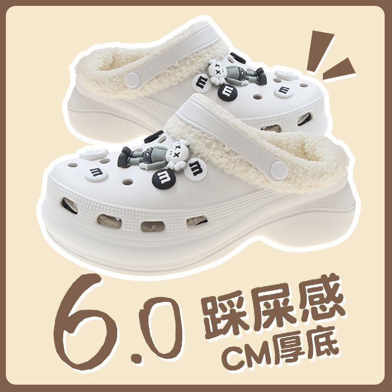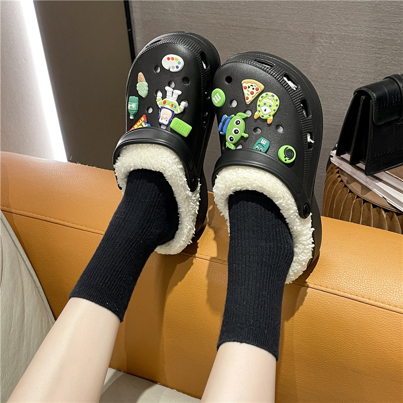 2023冬の新型ハイヒールの穴の靴の綿のスリッパの女性の厚い底にベルベットして保温します。