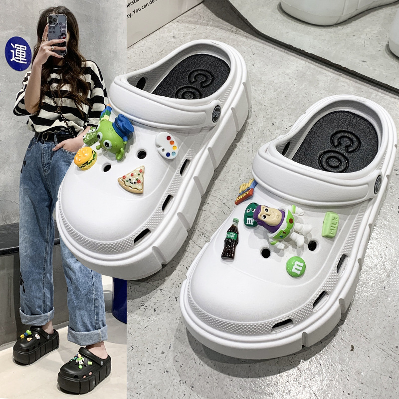 2024新型国境を越えた包頭サンダル女ins厚い底滑り止め6cm夏の外は砂浜の穴靴ガーデン靴を履いている