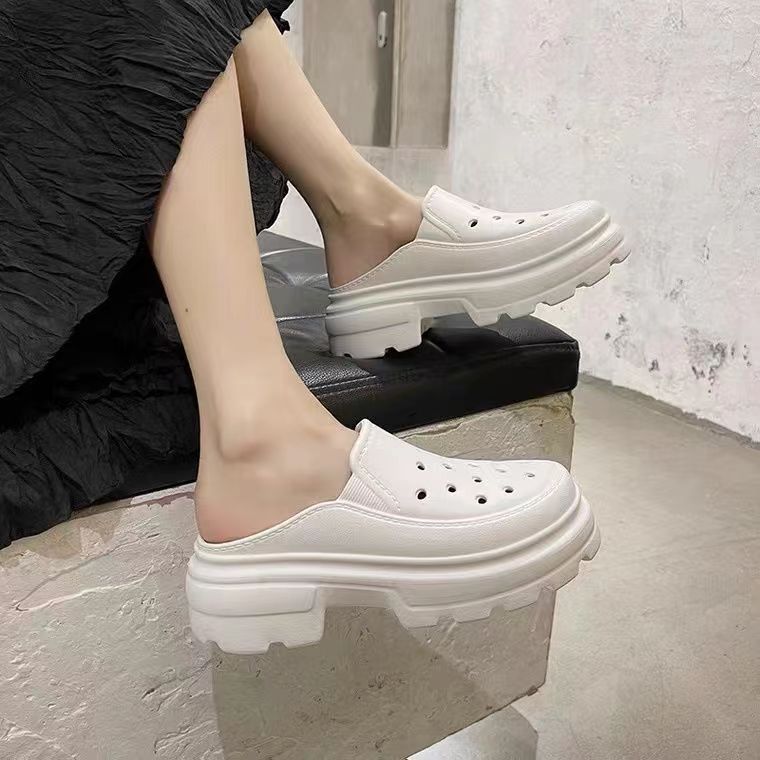 穴の靴の女性の夏の新型のハイヒールの半分は花園の靴のファッションの外でパンクの機関車の靴を着て厚い底のサンダルを高く上げます。