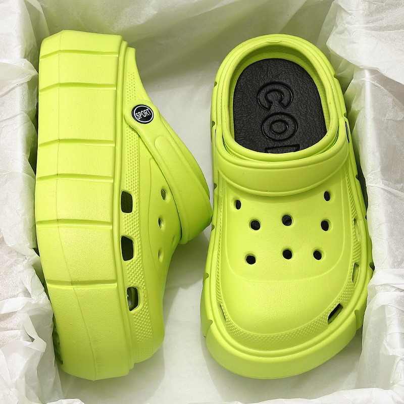 7cmハイヒールの厚さファッション外着アニメdiy洞靴女夏韓版ビーチおじさん靴グリーンスリッパ女