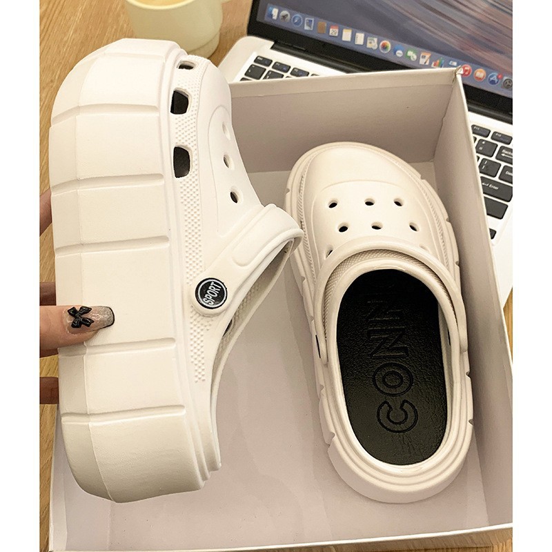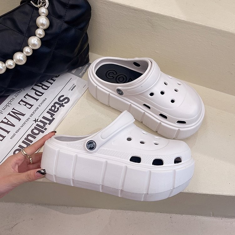 厚い底の砂浜の女性靴の2024年の夏の新型の坂と松の餅の穴の靴のハイヒールの花園の靴は糞感のスリッパの女性を踏みます。