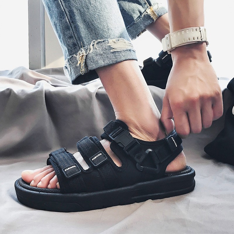 男子学生韓国スタイルサマーサンダル新しいトレンディなビーチシューズスポーツオープントゥサンダル男性の屋外着用通気性と滑り止め