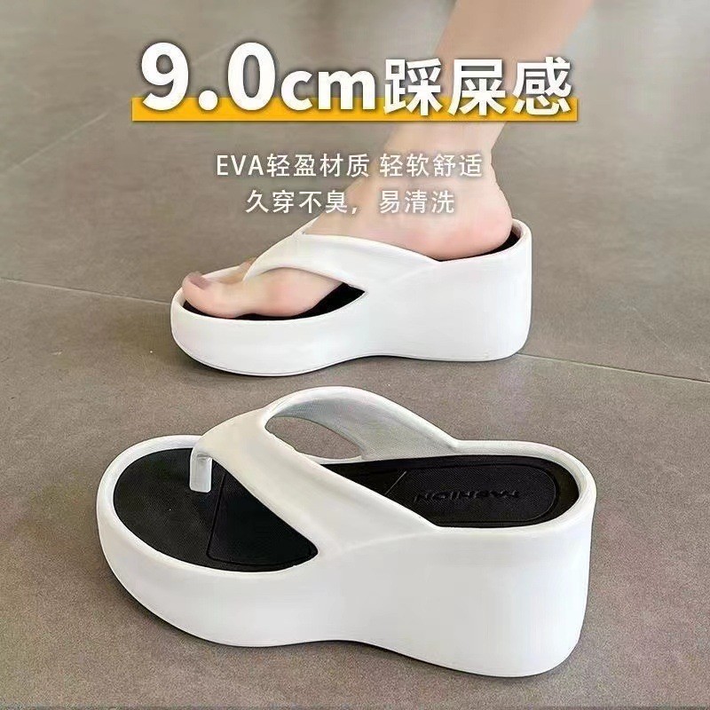 クロスボーダーの新型2024夏の厚い底の人の字は女性の外で足の坂を挟んで高くなります。