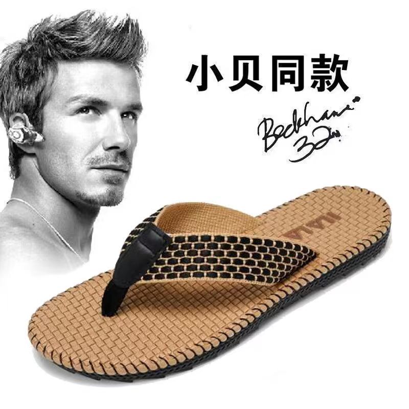 ベトナムの人の字は男の夏の外で足を挟むスリッパを履いています。