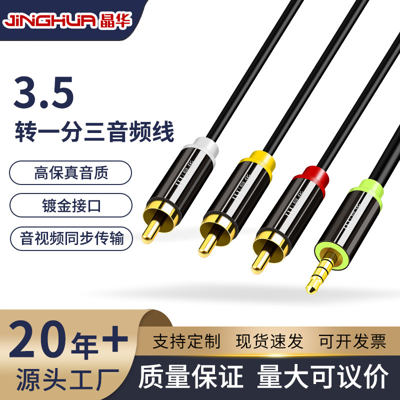 晶華三対三オーディオ線テレビ接続線3.5mmオーディオ線公対公六頭蓮花頭rca線