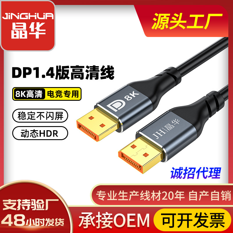 晶華dp 1.4公対公dp変換dp線8kコンピュータ本体ディスプレイ接続線dp線1.4版dp