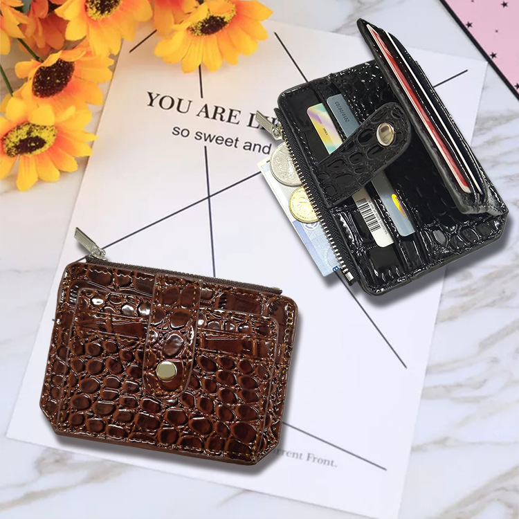 2021韓国の新型ワニの紋様の純色は小さいファスナーの0財布のファッションの証明書の中性のカードのカバーを掛けます。