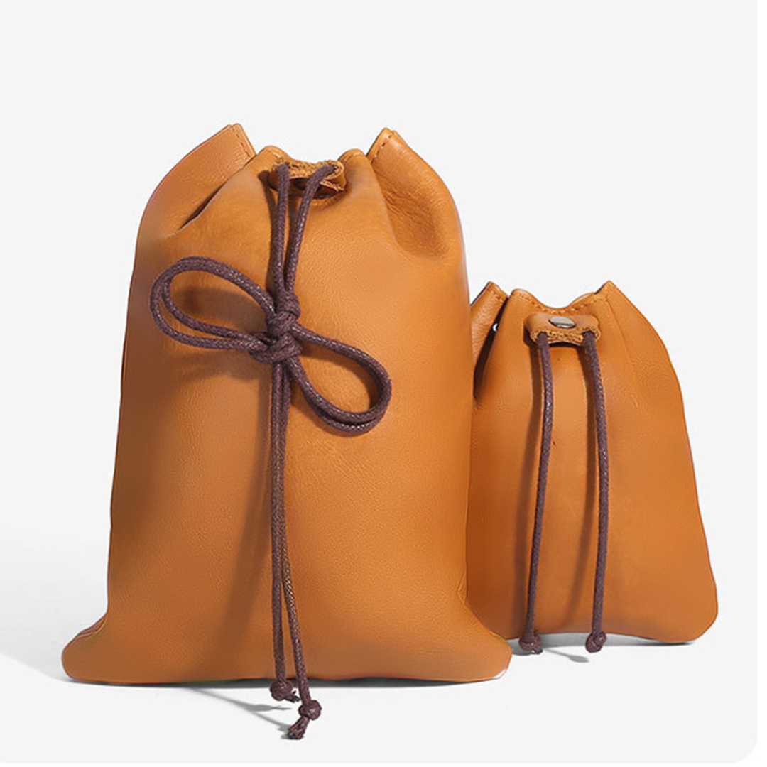 本革束口福袋牛革巾着バッグレトロコインバッグ小銭入れ小銭入れイヤホン収納袋