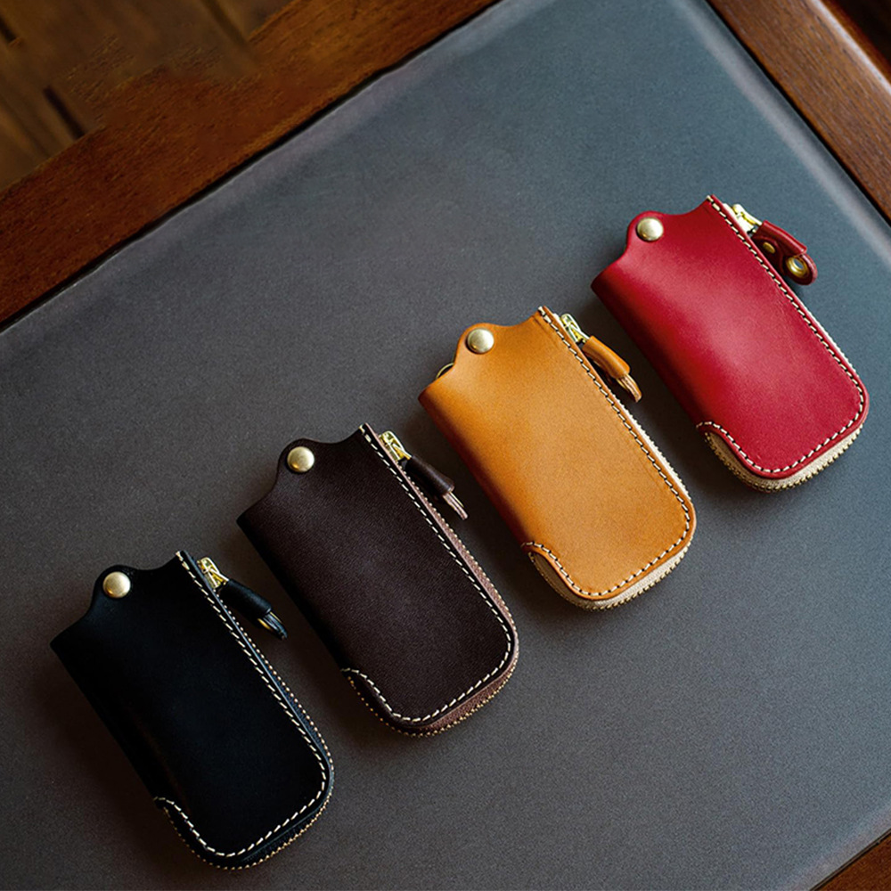 日本式のpuの腰の鍵のカバンは本革の高級感のファスナーの鍵の箱の復古の自動車の家庭用の鍵のボタンのカバーをまねます。