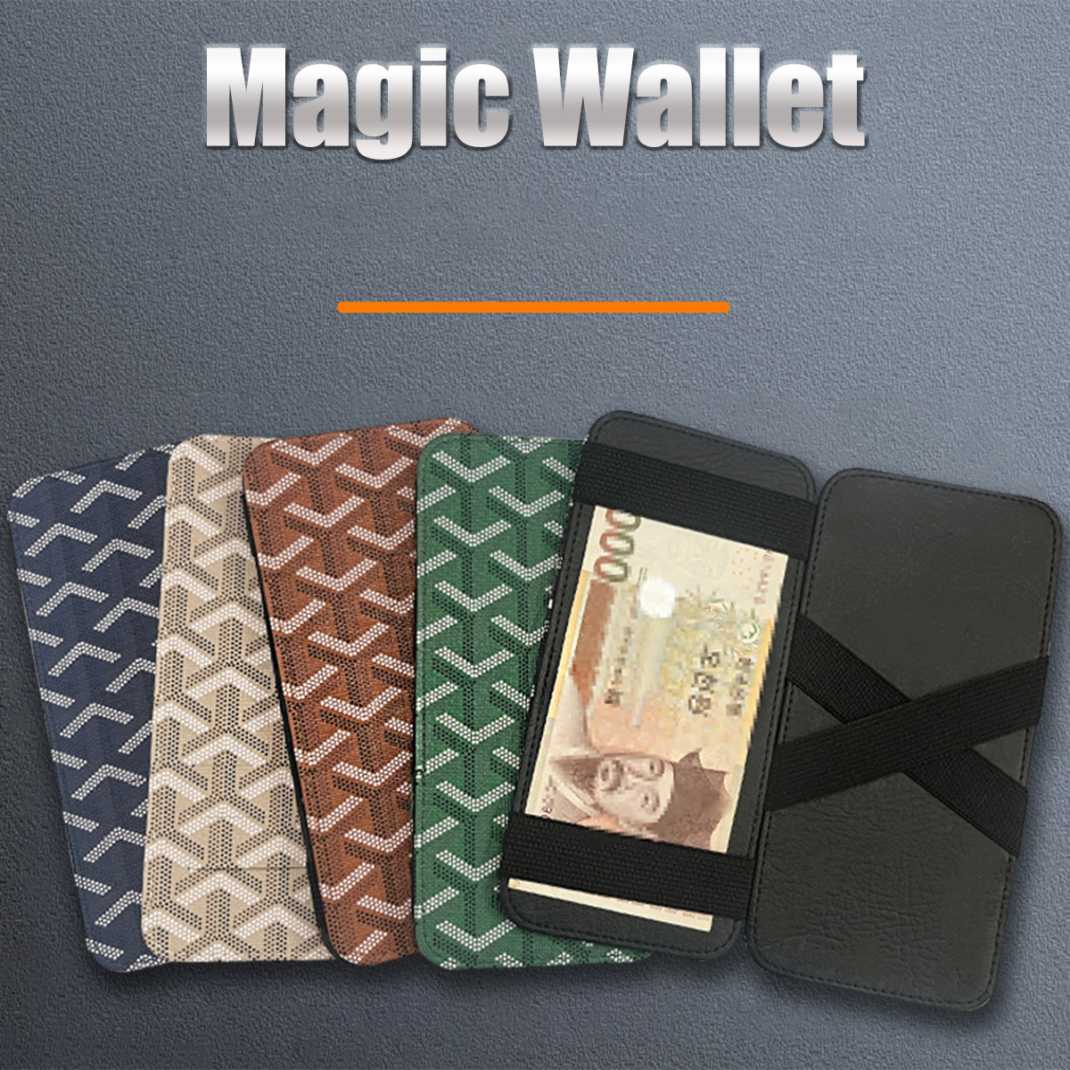 2024新型国境を越えた韓国版頭蓋美金クリップ長型男性財布マジック財布puカードバッグ弾性バンド