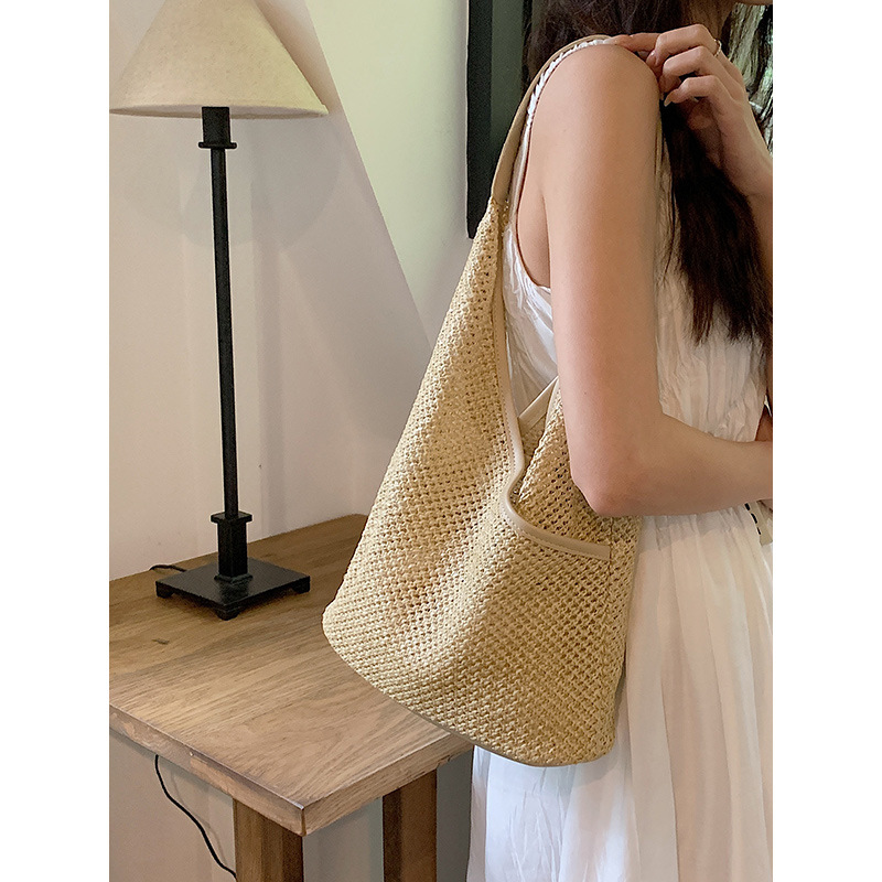 フランス式草編みバッグ女性2024新型大容量編みトートバケツバッグ夏海辺休暇ビーチバッグ