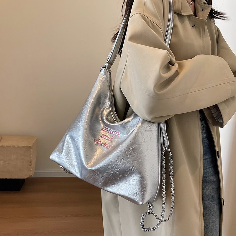 バッグレディース大容量斜めがけショルダーバッグシルバーシングル両肩両用バッグ2024新品夏通勤トートバケツバッグ