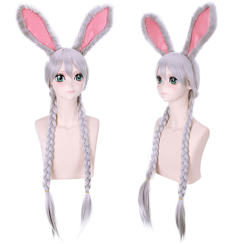 主聖達狂った動物城兎朱迪judyウサギ擬人cosかつら白黒灰色ウサギ耳