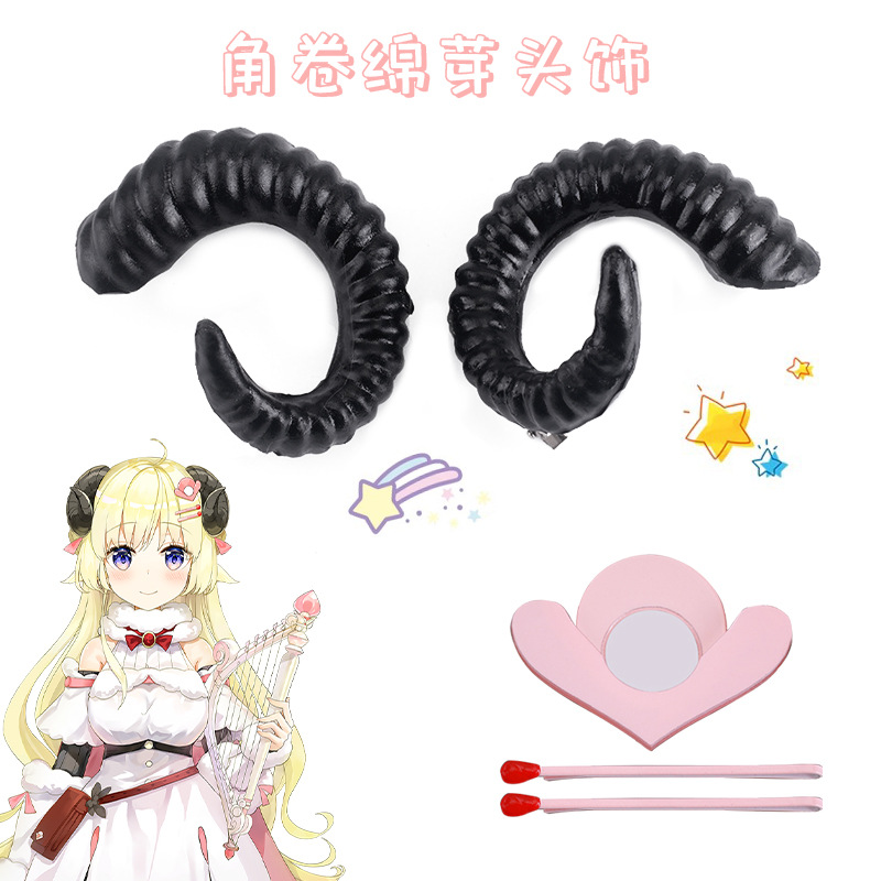 主聖達hololive角巻き綿芽羊角頭飾り綿羊角アクセサリー黒道具