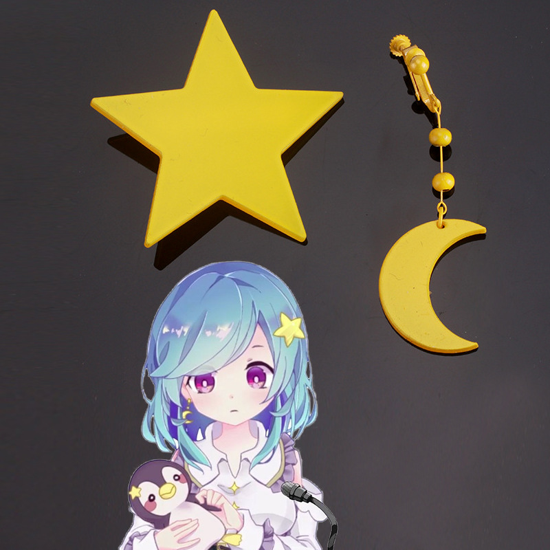 主聖達コスプレ仮想キャスター星宮汐頭飾り月イヤリング黄色cosアクセサリー耳クリップ