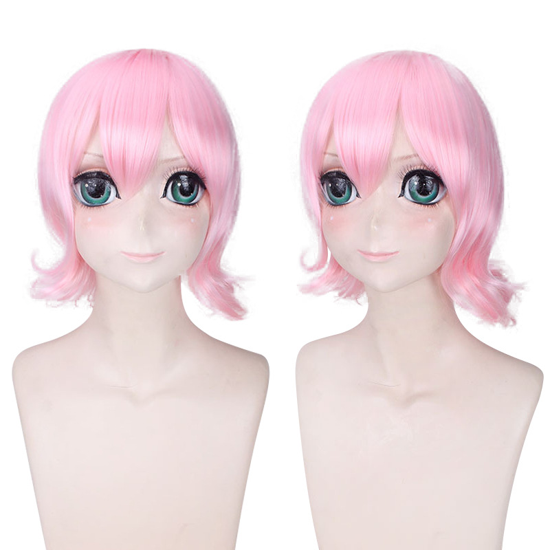 主聖達西行寺幽幽子cosかつら柔らかい粉の短い巻き髪の高温糸アニメかつら655