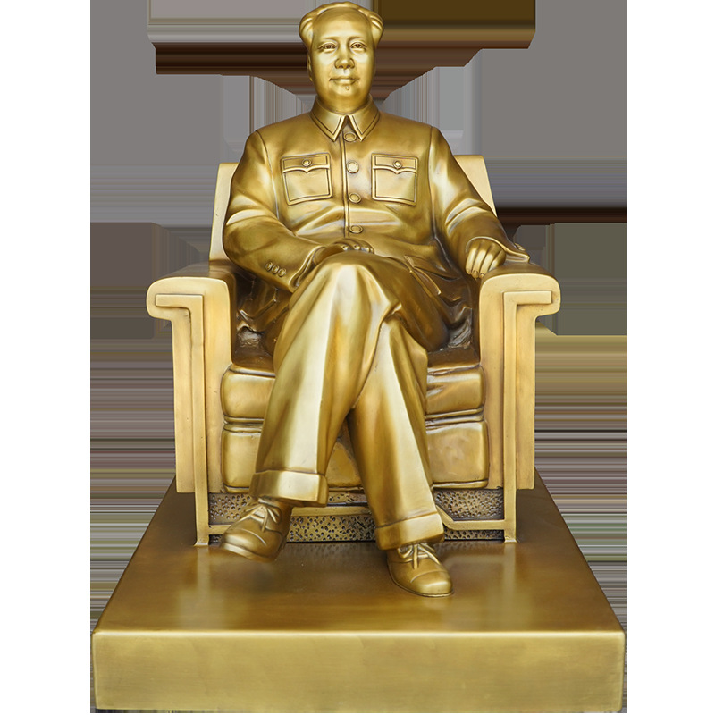 毛主席像銅像真鍮の家庭工芸品は真鍮の置物毛沢東の人物の全身彫刻の中に座っています。