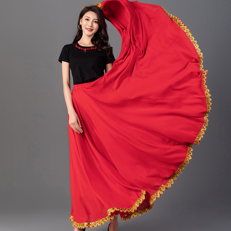 代理720度大振り子クラシックダンス演出服シフォンスカート大赤色新疆ダンススカート広場ロングスカート