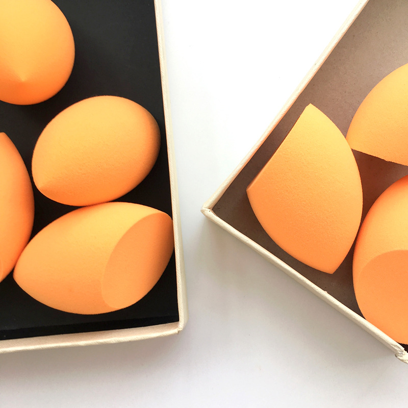 親水性の高いオレンジオリーブ斜めカットメイクアップスポンジ、ウェット&ドライ両用メイクアップスポンジパウダーパフツール