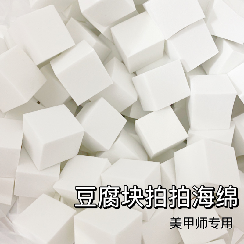 ネイルアートの豆腐の塊をたたいてスポンジのグラデーションをぼかして粉を染めます。