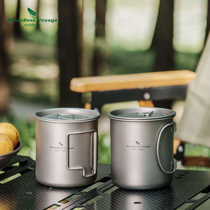 純チタン製アウトドア折りたたみ式ウォーターカップ 450ml ティーカップ キャンプ用コーヒーカップ シングルレイヤーカップ 水を沸かすこともできる 軽量