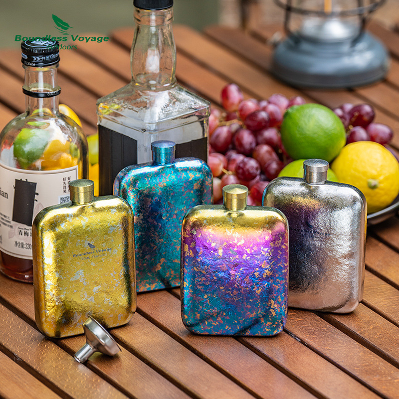 必唯純チタン結晶酒壺漏斗付きキャンプ自慢チタン酒壺チタン水筒超軽量携帯ポケット壺