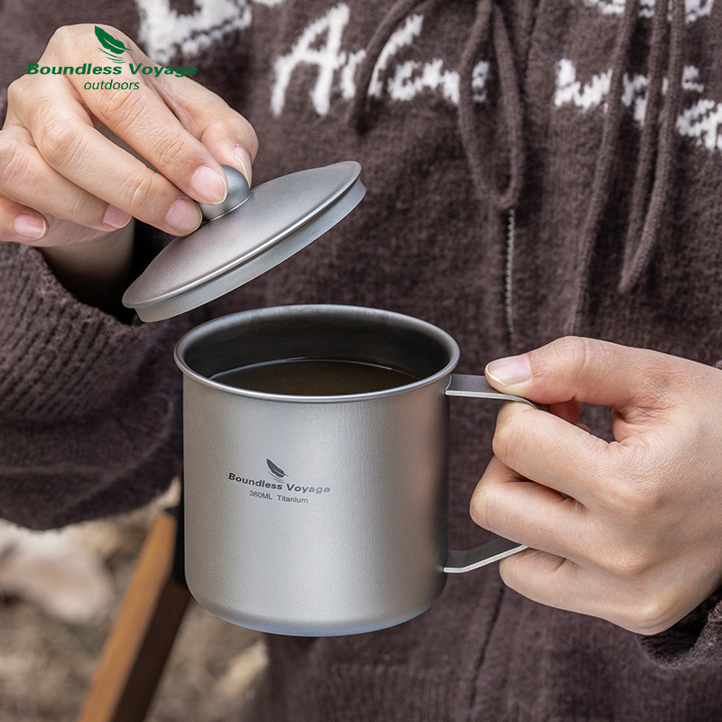 必唯純チタンカップ蓋付き固定ハンドル超軽量屋外キャンプキャンプ用マグカップ単層
