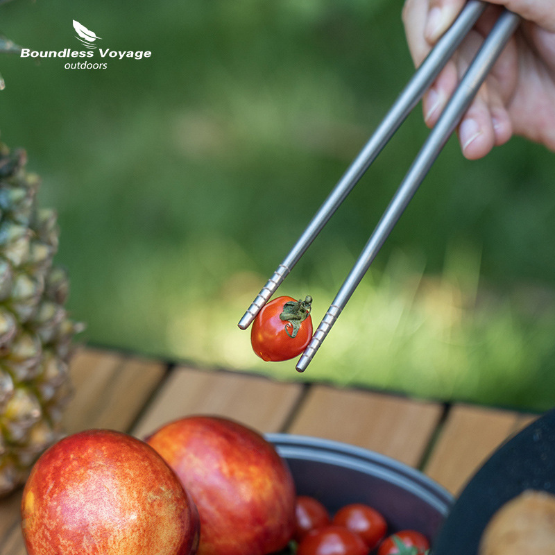 必唯純チタン箸角箸丸箸中空屋外旅行キャンプ高級家庭用食器滑り止め携帯軽量