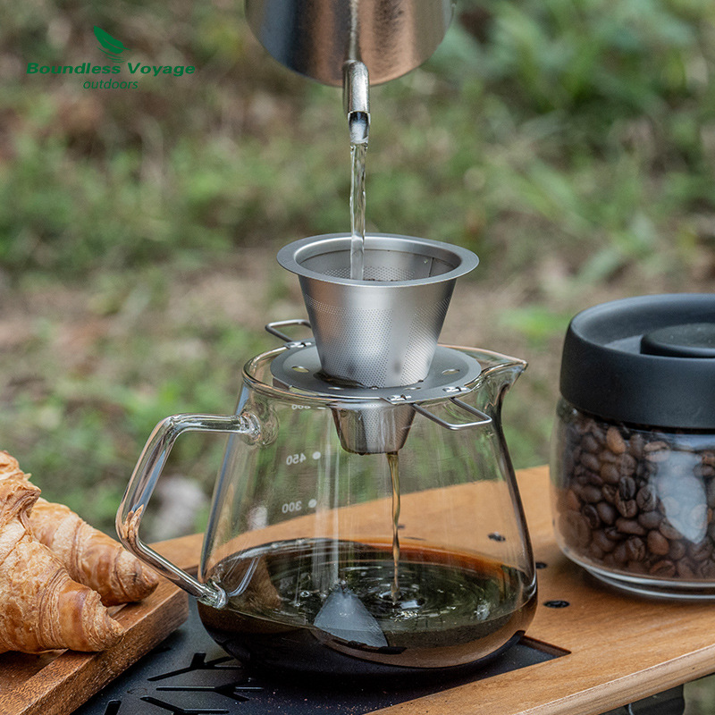 Biwei 純チタンコーヒーフィルターホルダーセット手淹れコーヒーフィルター屋外家庭用茶漏れ折りたたみハンドル付き