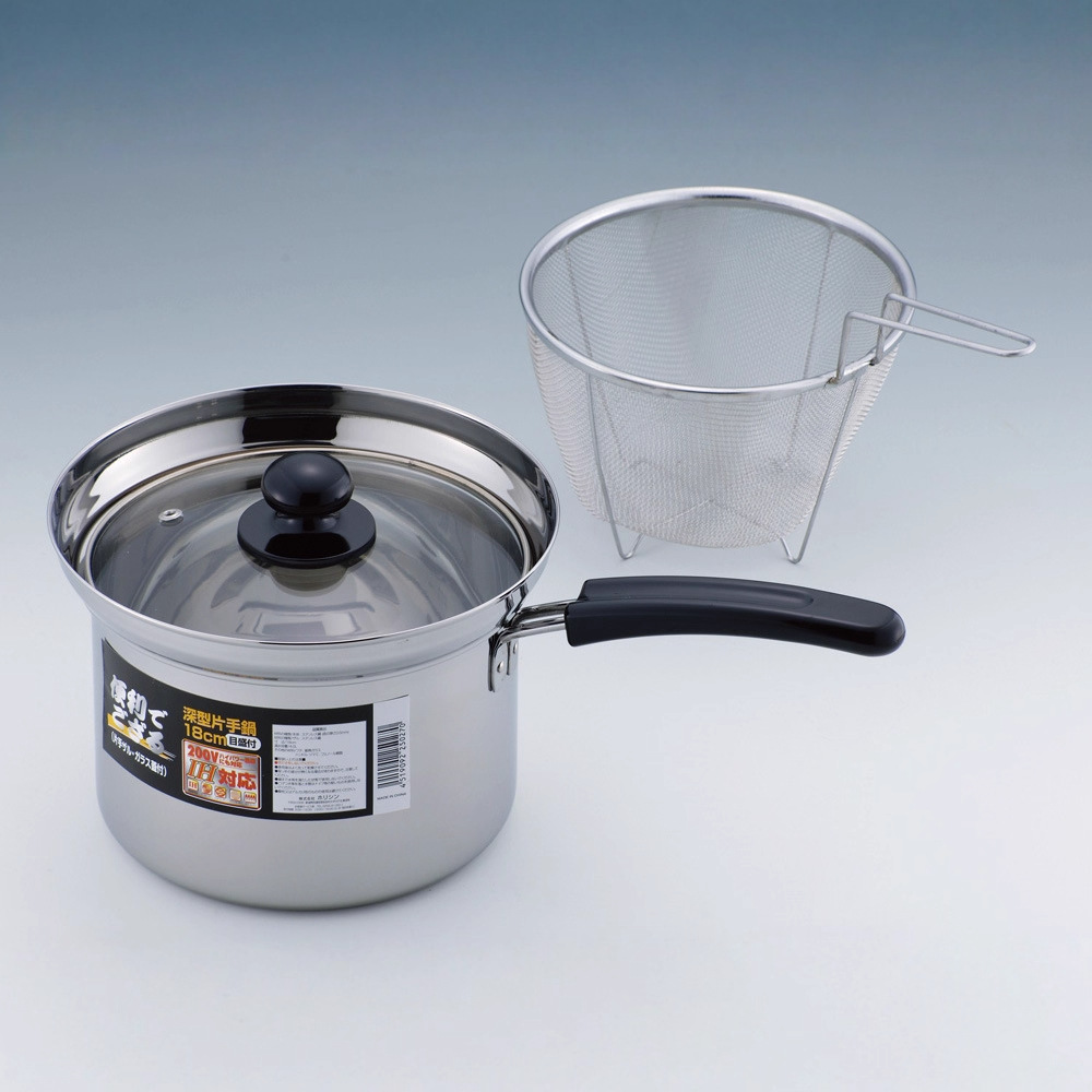 安楽ステンレス麺鍋18cmスケール付きオーバーフロー防止設計