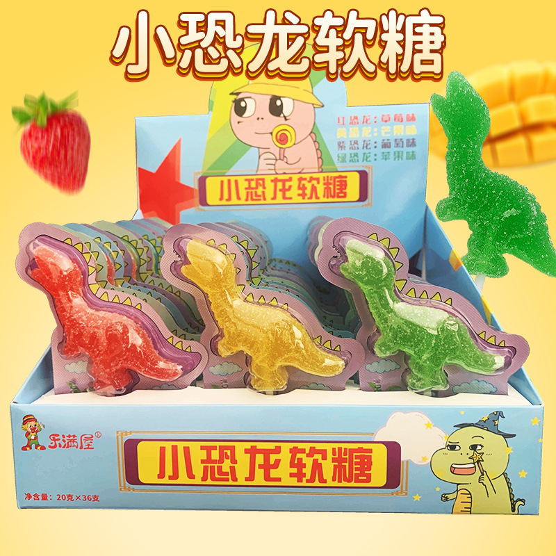 子供の漫画の恐竜の果実の味のジュースのグミのロリポップのアイデアのかわいい子供の間食の売店のキャンディーネットの赤