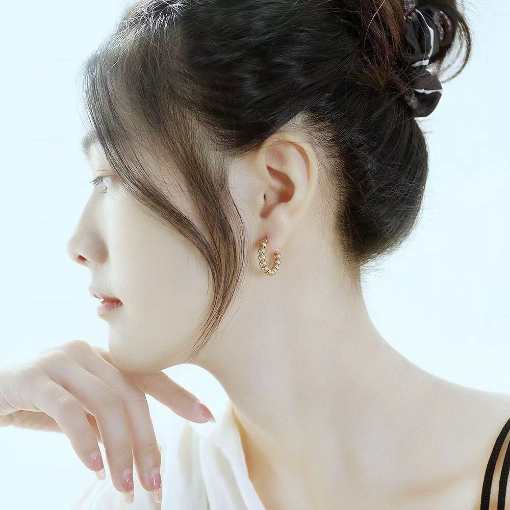 クロスボーダーのステンレスのイヤリングは18kの金の耳輪の新型のファッションの女性の簡単なネットの赤いイヤリングの気質のイヤリングをめっきします。