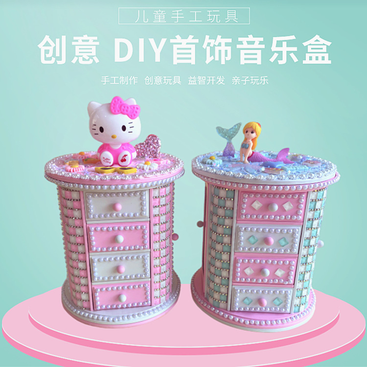 オルゴール円形アクセサリーキャビネットモザイク手作り漫画音楽収納ボックス子供diyおもちゃ卸売