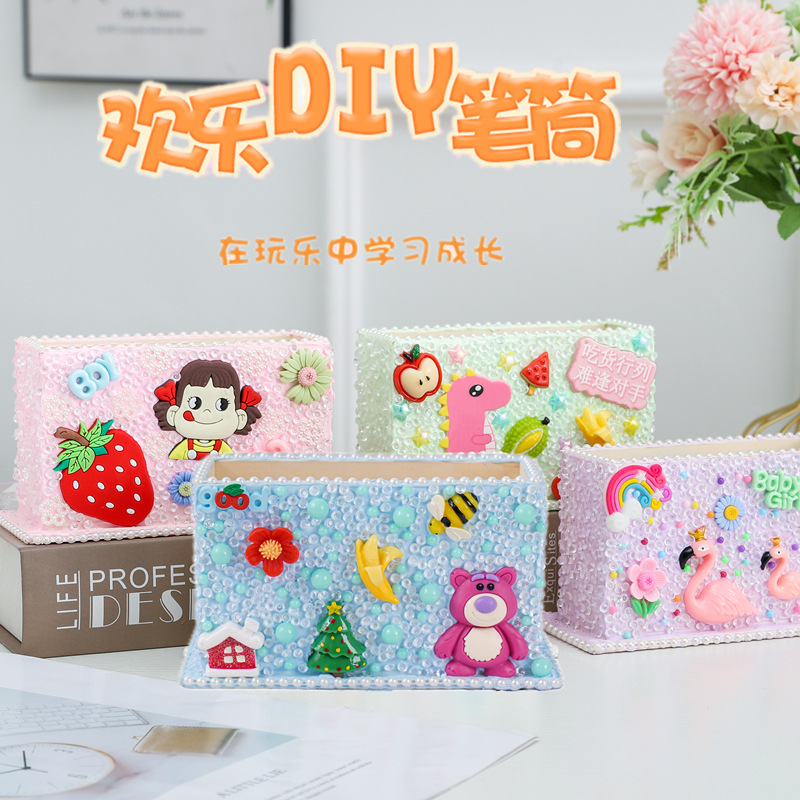 楽しいdiy筆筒子供手作り文房具筆箱シミュレーションクリーム小物貼り付け材料バッグ卸売り