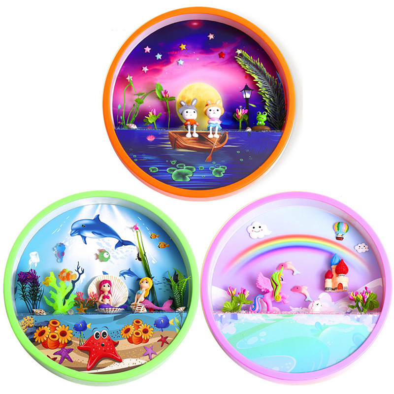 子供diy手作りピクチャーアニメ壁丸微景観円盤貼り絵益智玩具材料包