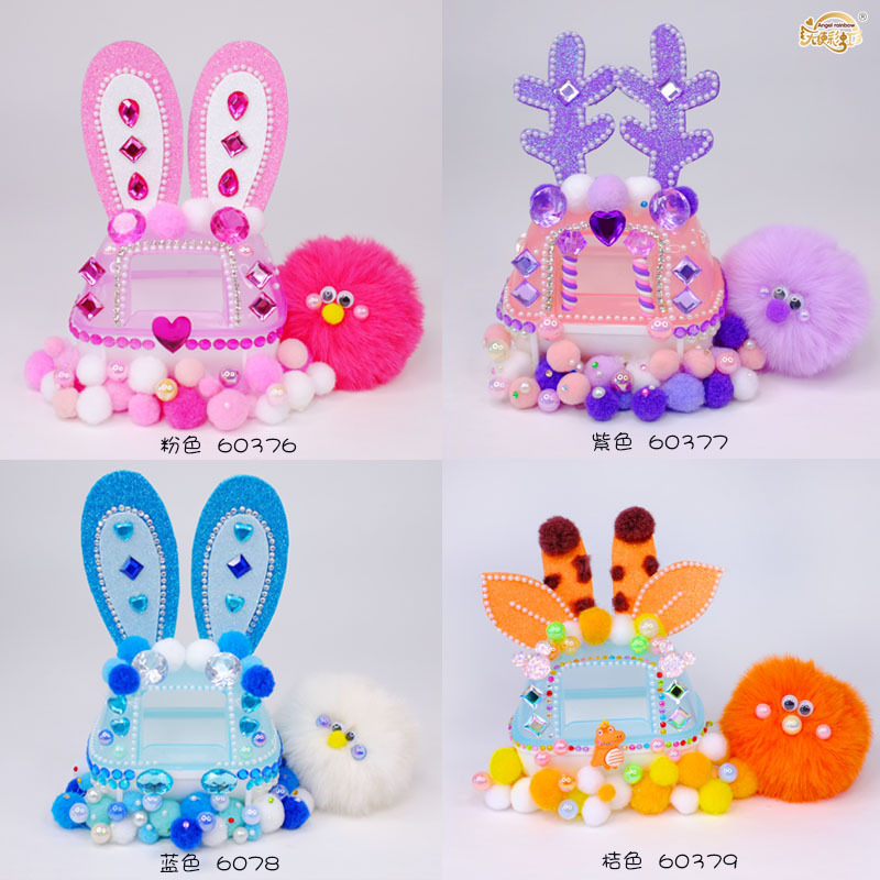 子供diy手作り毛怪小屋ウサギ動物貼りダイヤモンド宝箱アクセサリー箱知育玩具
