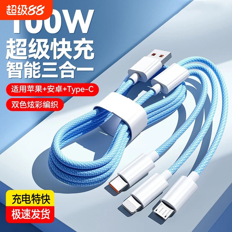 データケーブル スリーインワン携帯電話充電ケーブル 1対3 Apple 液体ソフト接着剤多機能 Type-C データケーブル