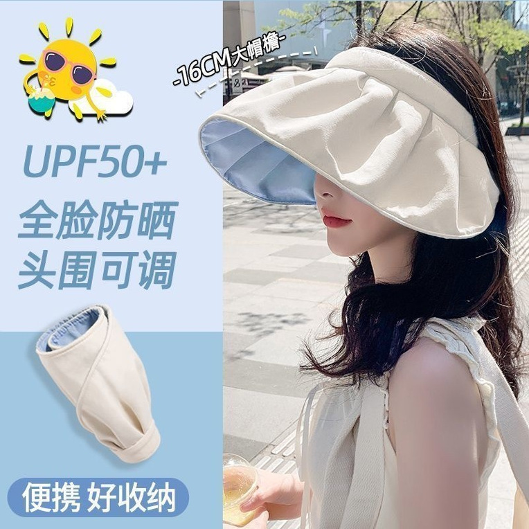 女性用折りたたみシェルハット 2025 新しい大きなつばの夏の日よけと抗 UV フェイスショーティー空のトップ日焼け止め帽子