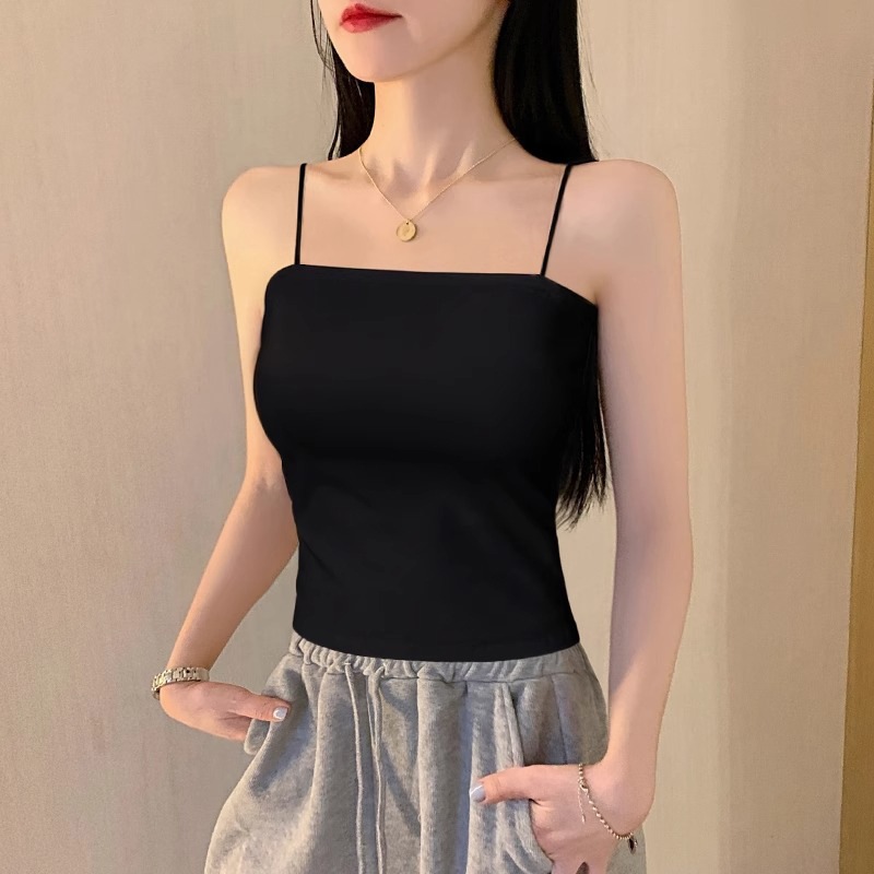純白のボトムコットンキャミソールレディース2025春夏新スタイル高級インナーとアウタートップ胸パッド付き