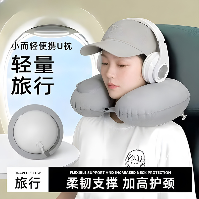 新製品発売、軽量でポータブルなプレスインフレータブルU字型枕、屋外旅行の必需品、飛行機高速鉄道オフィスネックサポート