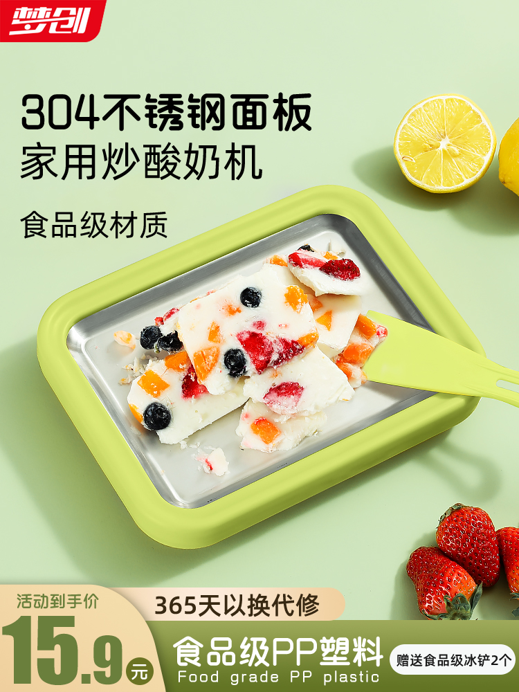 炒めヨーグルトマシン、家庭用小型炒めアイスクリームマシン、ミニ子供用炒めヨーグルト専用アイスクリームマシン、炒めアイスクリームトレイ、プラグなし