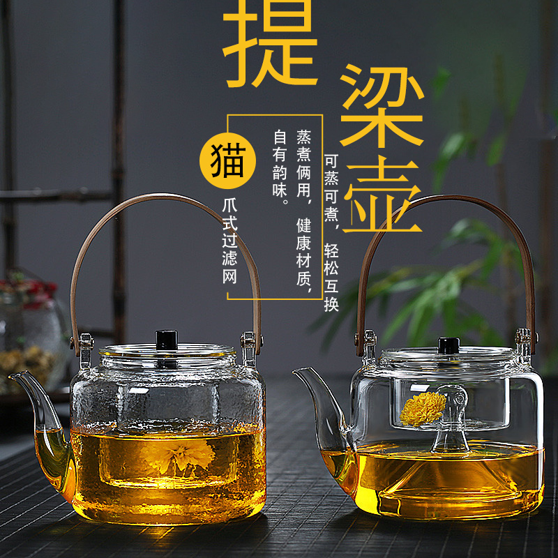 ガラス製ティーポット、ハンドル付きティーポット、スチームティーメーカー、電気ティーポット、槌目竹ハンドル、家庭用