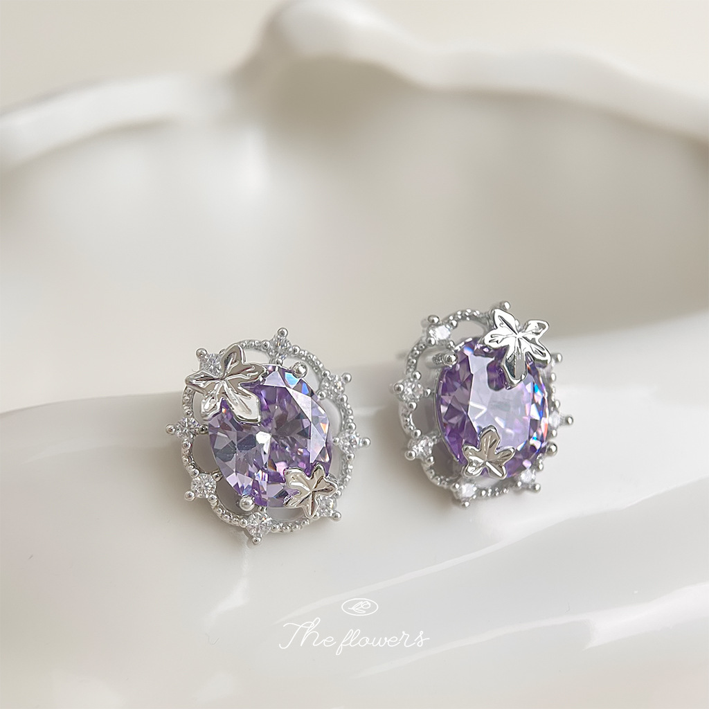 本物はとても光沢があり、とても美しいです!象嵌パープルジルコン多用途幾何学的なフォレストスタイルのスーパーフェアリースイートイヤリング女性のライトラグジュアリーイヤリング