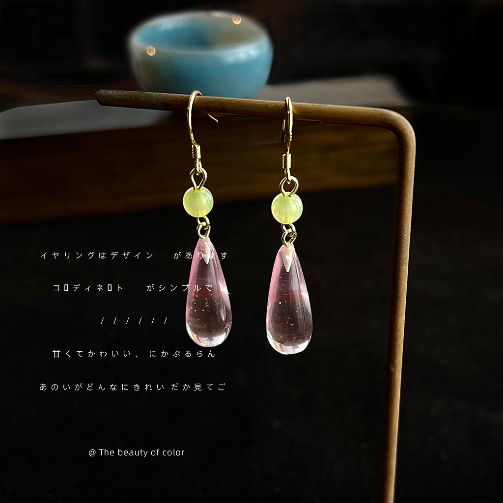 レトロ宮廷925銀針手作りデザイン感ピンク透明水滴気質耳飾り女性イヤリング工場卸売り