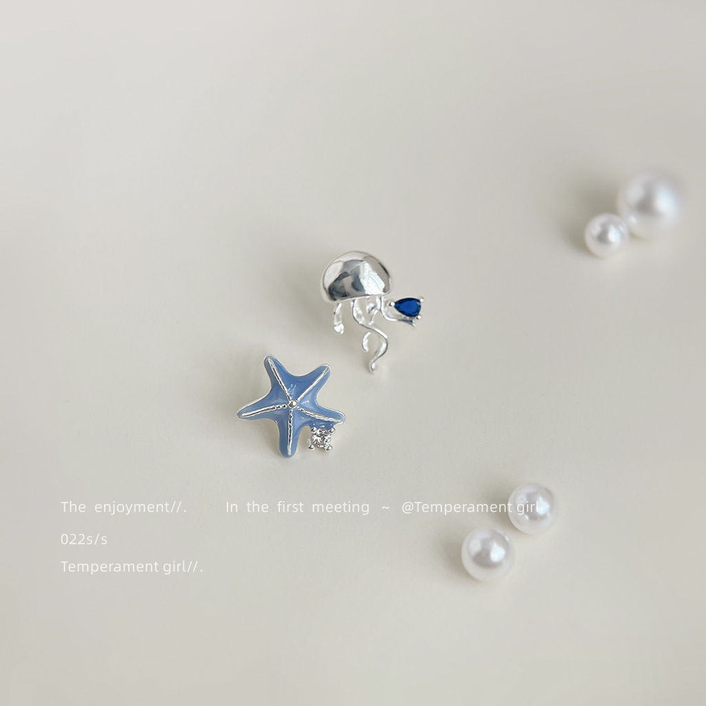 デザイナーモデル ~ 非対称個性ins甘いクールな海星とクラゲ銀色のピアス