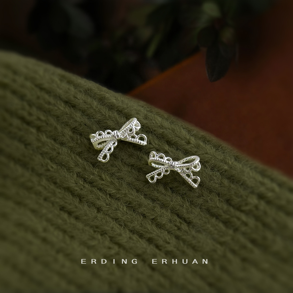 レース部!シンプルでファッショナブルな通勤多用途シルバー925針中空リボン新しいスタイルのイヤリング工場製イヤリング女性用