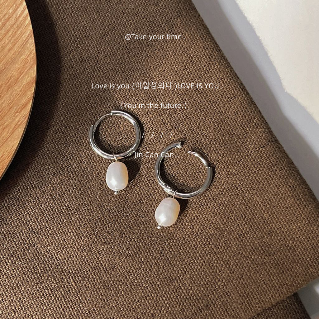 淡水パール~リアルシェルライトラグジュアリースタイルフレンチシンプルハイエンドエレガントイヤリング女性用14Kシルバー針メッキ小さなイヤリング