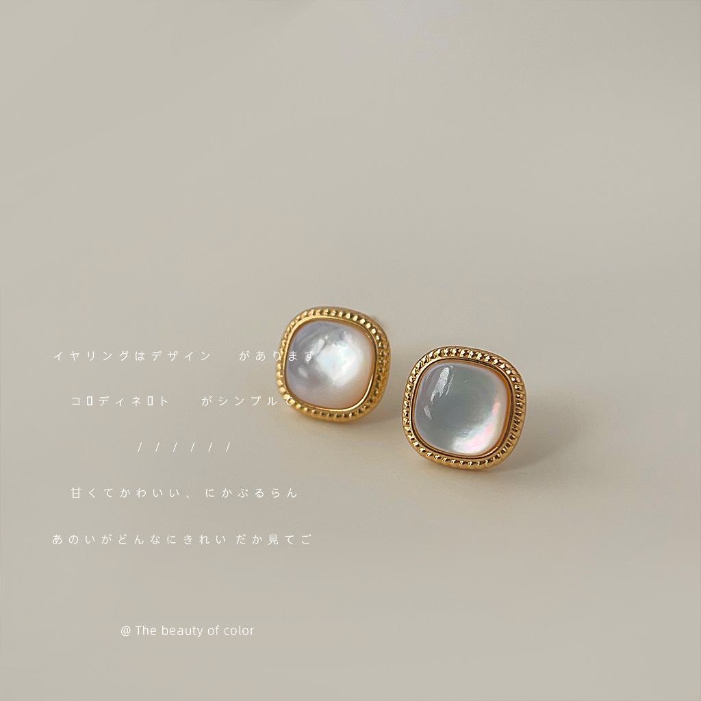 非常にシンプルな貝殻の正方形の幾何学925銀針メッキ14kピアスの気質ファッションの小さい耳飾りの軽い豪華なアクセサリー